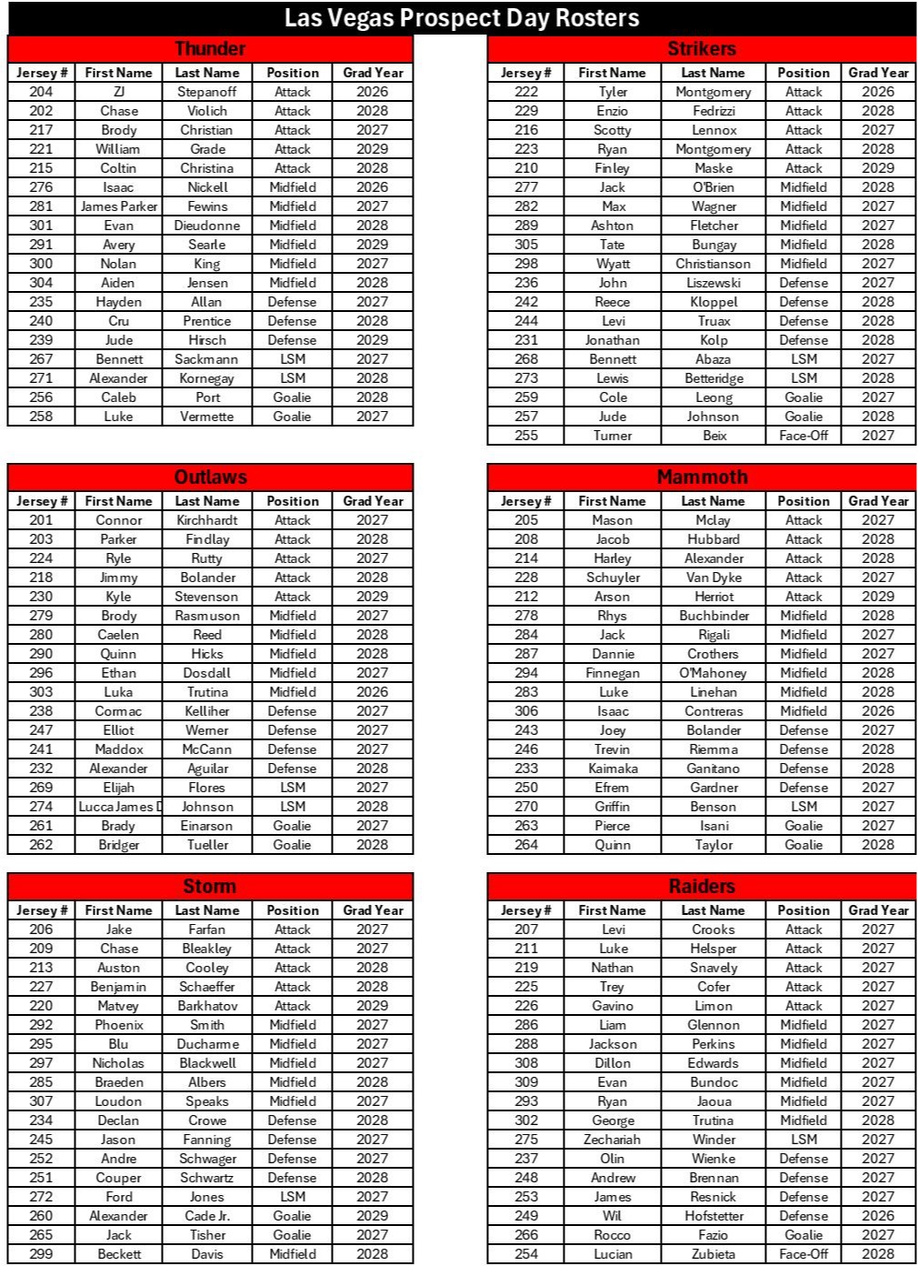 The Las Vegas Prospect Day, held each December, is a premier opportunity for players to connect directly with top NCAA coaches while showcasing their skills in a focused, high-level environment. Athletes will take part in a college-level practice featuring individual fundamentals, positional training, small-number situations, and full-field transition, followed by live competitive games.